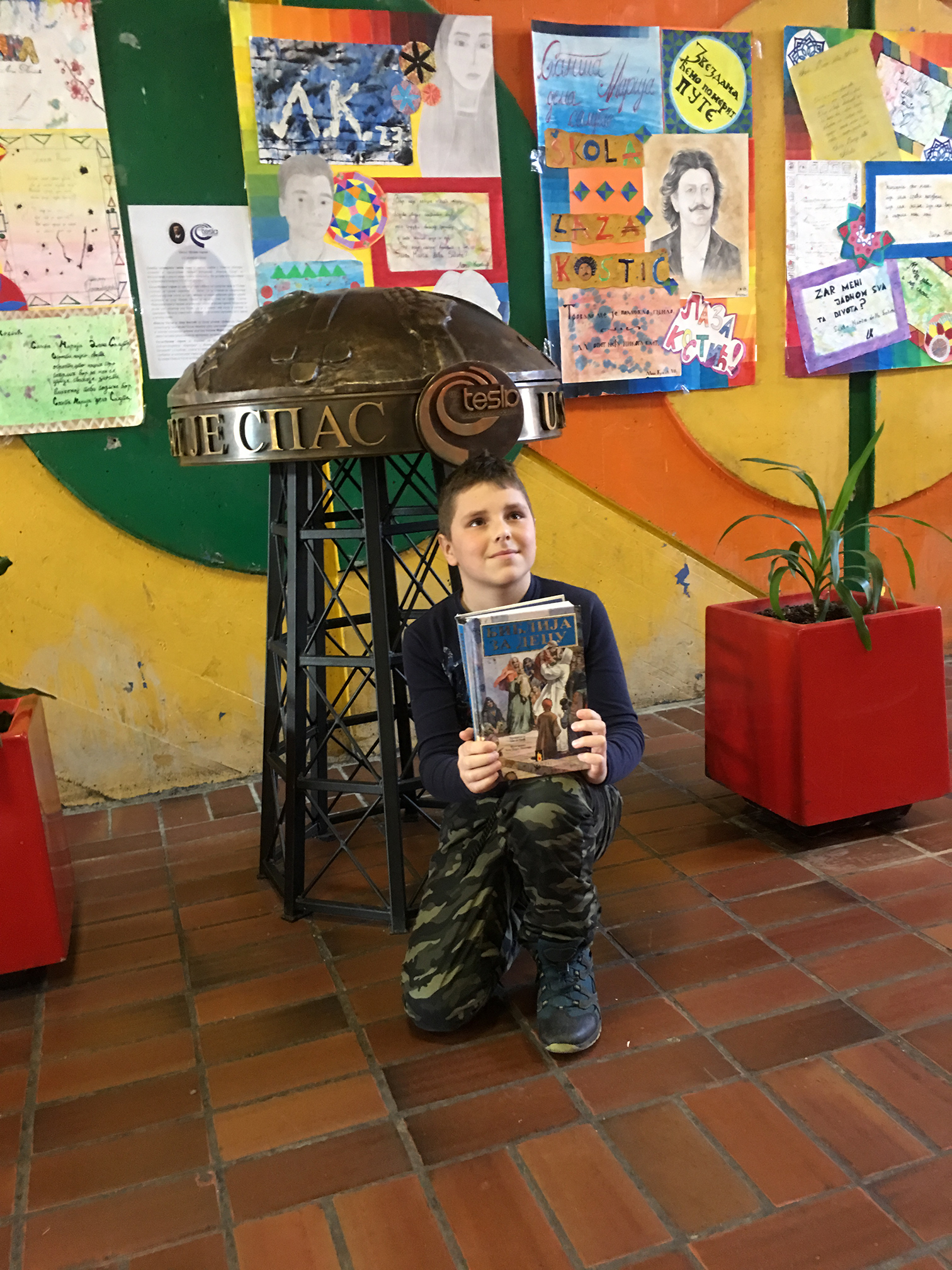 Десетогодишњи Давид Бракус Мехмедовић, ученик V/3 разреда школе „Горња Варош“ из Земуна, први је искористио прилику да се слика испред торња и то са својом дечијом Библијом. „Тесла је био верник, а Библија је леп симбол. Мислио сам да је добро да се сликам са њом, а да људи тумаче како ко жели“, објашњава мали Давид, који је из Земуна дошао у нади да освоји своју прву медаљу.