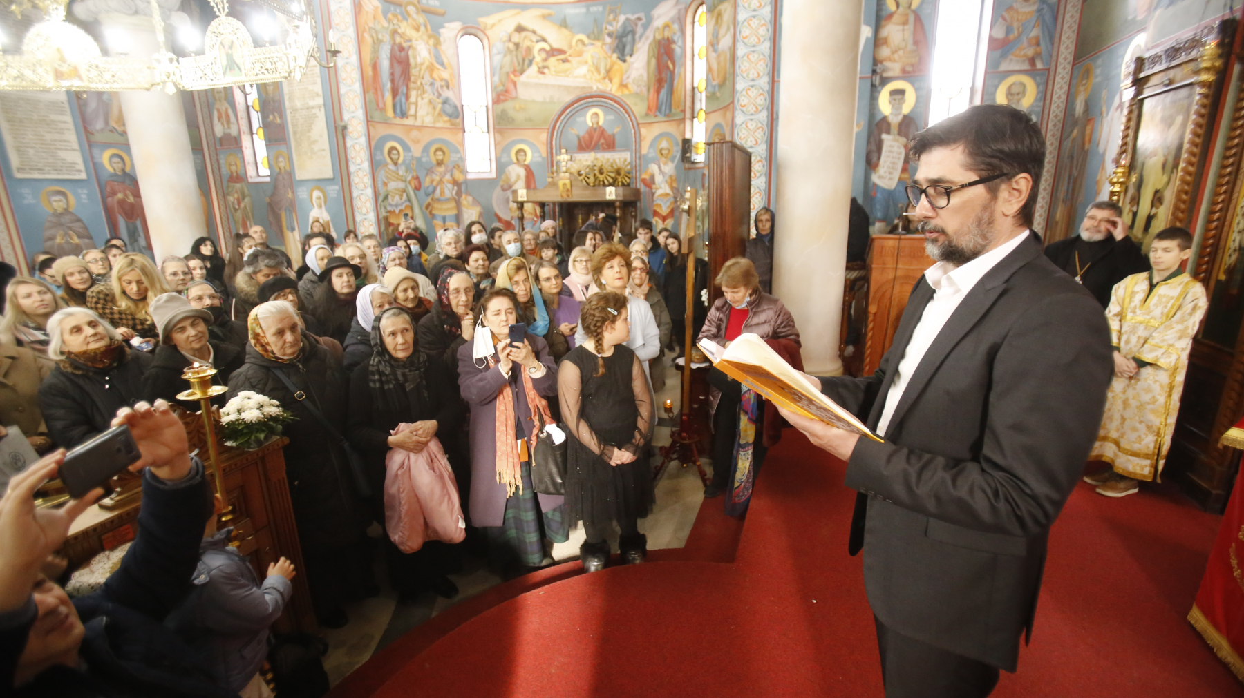 У препуној Вазнесењској цркви у Жаркову, у суботу 12. фебруара, након литургије коју је служио о. Небојша Милићевић, на челу са старешином храма о. Бранком Митровићем и освећења колача који је ове године  преломио прослављени глумац Војин Ћетковић, оснивач и управитељ Фондације, Марина Милић Радовић, обратила се речима: