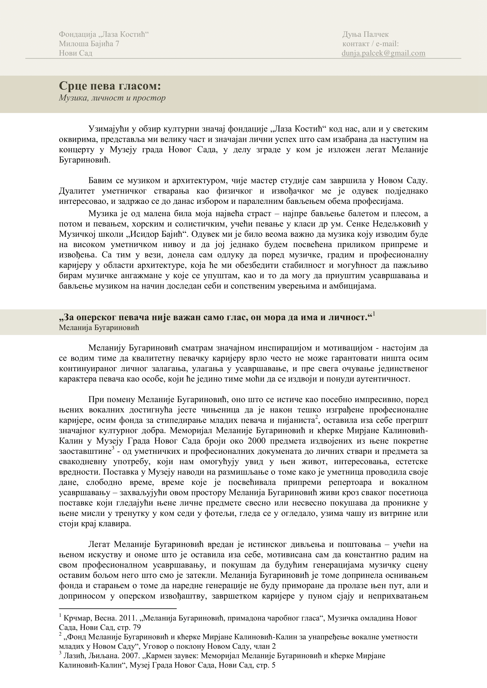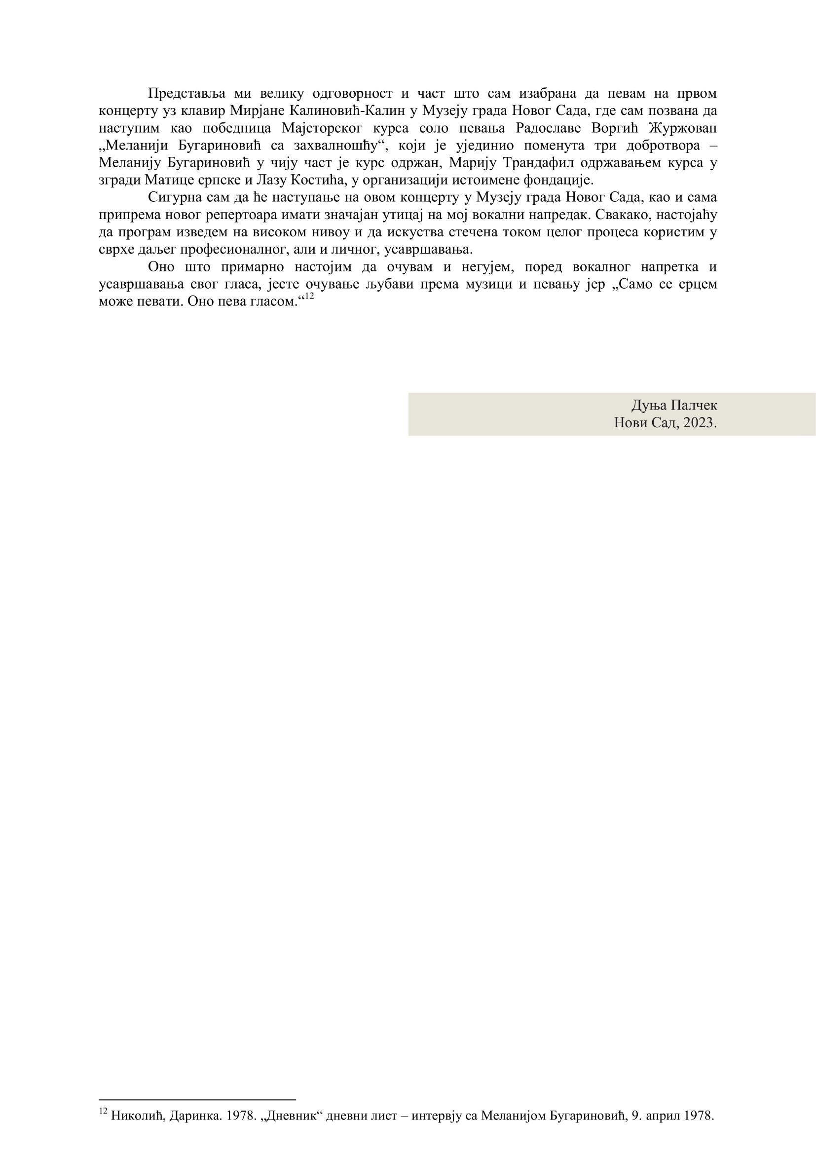 СРЦЕ ПЕВА ГЛАСОМ: Текст награђене полазнице курса „Меланији Бугариновић са захвалношћу“