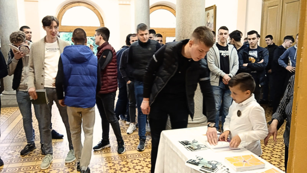 На крају вечери, Марина Милић Радовић, оснивач и управитељ Фондације „Лаза Костић“ уручила је Богословији вредан цртеж Пеђе Ђаковића, Св. Сава благосиља пчелу.