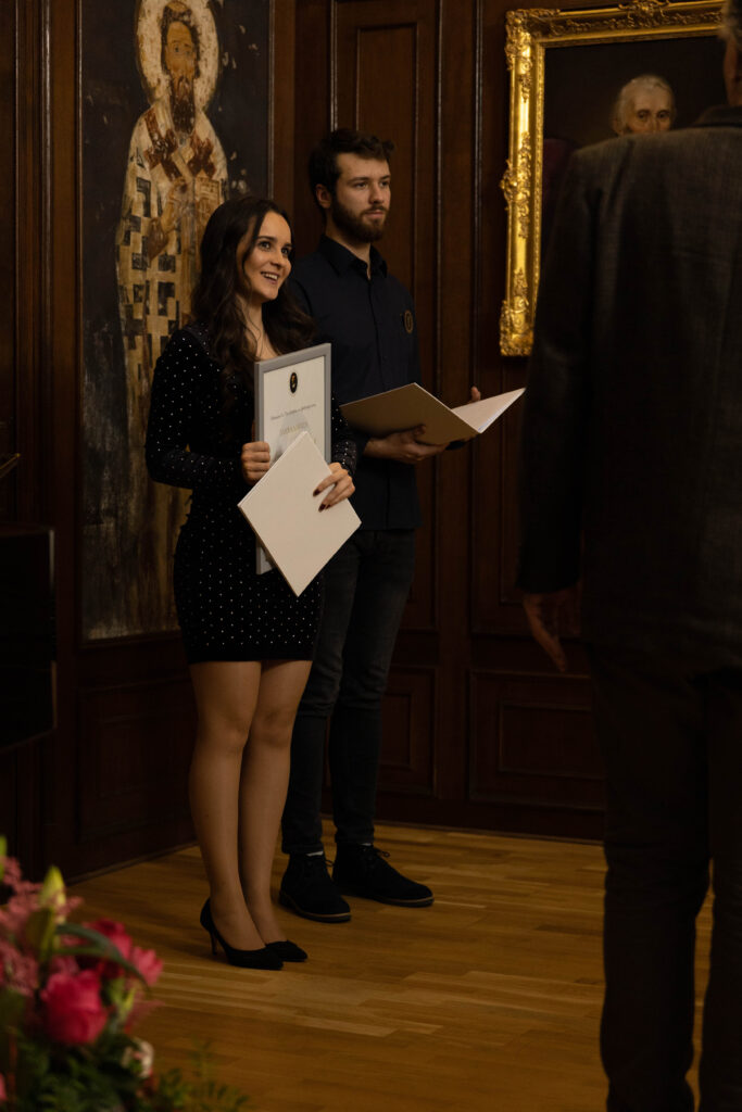 У препуној сали, публика је могла да ужива у најнеобичнијем „изуму“ пијанисткиње Марине Милић Радовић, која је, у част двојице славних песника, Лазе Костића и Матије Бећковића, саткала посебан музичко поетски укрштај: Костићеву песму Међу јавом и мед сном, Бећковићев критичко-поетски осврт на њу и Прелудијум Сергеја Рахмањинова. А на крају, задивила је све присутне „ремек делом“ (по Бећковићевој оцени), премијерним извођењем свог ауторског дела, свирајући Santa Maria della Salute Лазе Костића и говорећи Бахову Чакону, у специјално дизајнираној „Лаза Костић“ хаљини, на којој су се преплитали Костићев потпис и ноте. Студент генерације Новосадског универзитета, виолиниста Андреј Балаж, чудесно се појавио говорећи стихове Међу јавом и мед сном на јапанском, превод који је он сам, велики заљубљеник у јапанску културу, направио као поклон за славу Фондације.