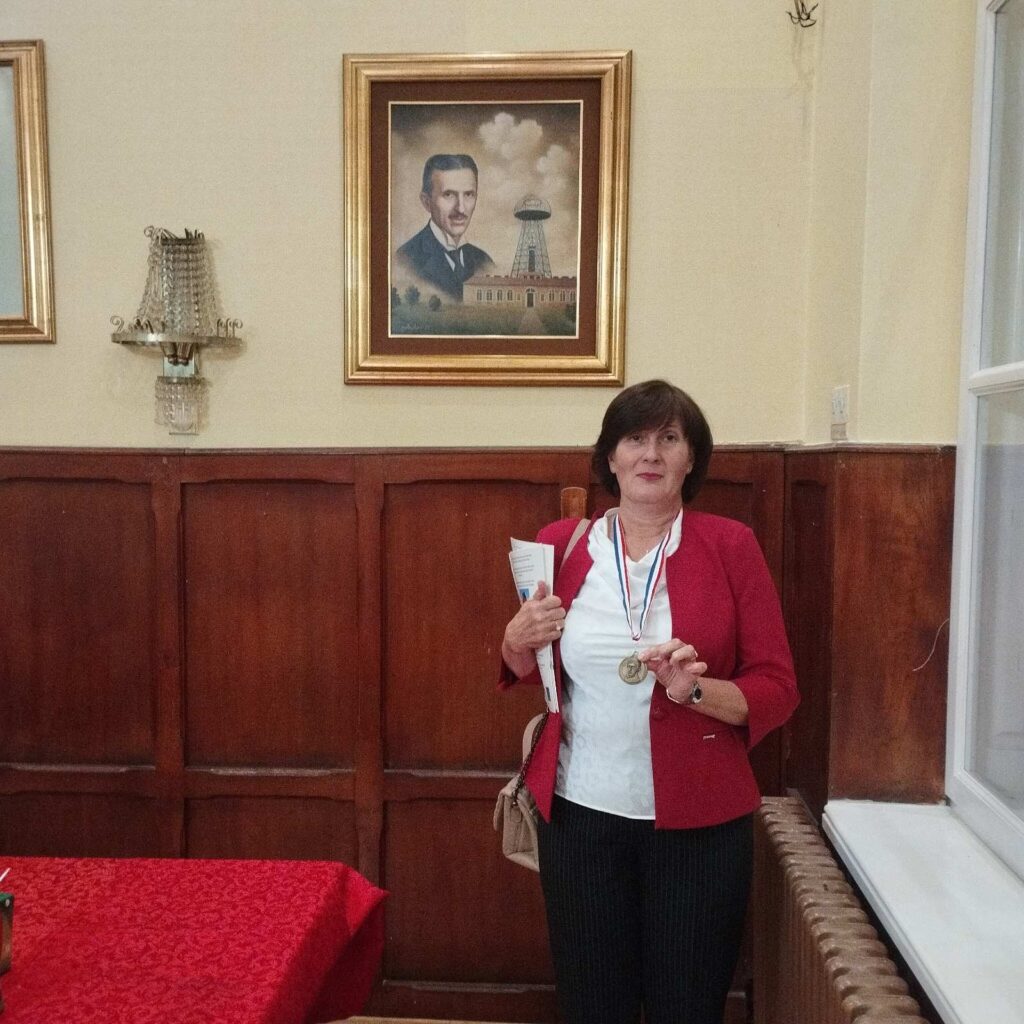 МЕДАЉА ТЕСЛИНЕ ФОНДАЦИЈЕ ИЗ ФИЛАДЕЛФИЈЕ НА ВРАТУ УЧИТЕЉИЦЕ МИЛЕНЕ КРГЕ
