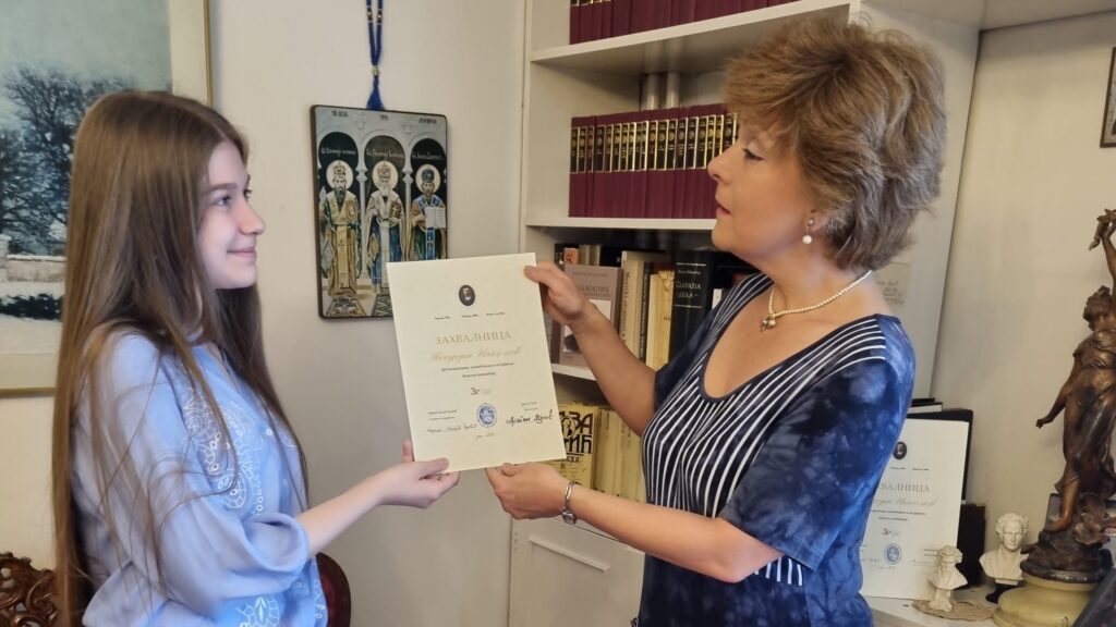 ЗАХВАЛНИЦА И НАИМЕНОВАЊЕ ТЕОДОРИ НИКОЛИЋ, ученици VIII разреда ОШ Лаза Костић